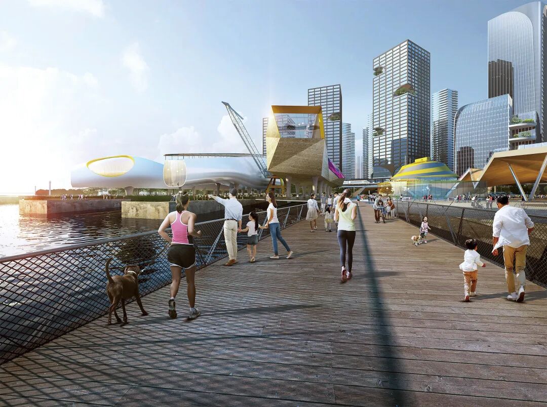 人们在未来的滨江船台可以慢跑、拍照打卡,欣赏珠江美景。