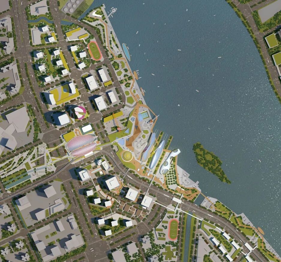 因此“广州船厂城市设计”的目标是以“湾区未来港”之名续写辉煌,缔造地标,打造集办公、商业、住宅和滨江主题公园于一体的“广州城市新客厅”。
