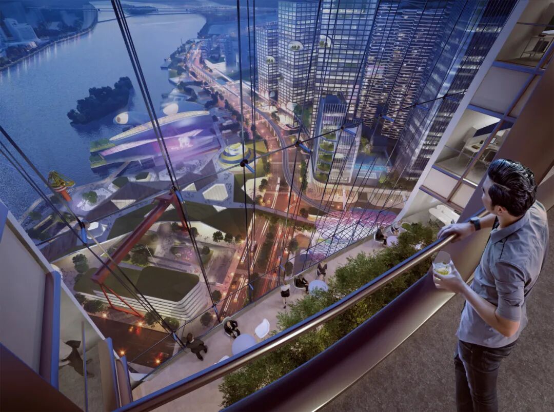 想象在未来一个阳光的周末,时空船场里举行着各种活动,人们来到这里购物和吃饭,也可以体验下时空船场与船厂龙门架之间刺激的滑索娱乐项目,顺便眺望下滨江美景。