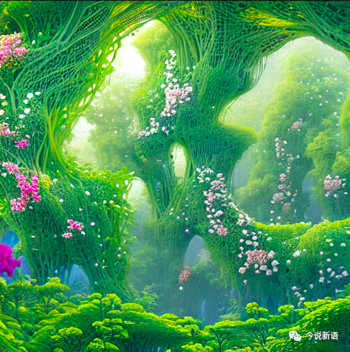 输入prompt语句:Very dense bushes with dense green leaves and bright flowers, in <style-vkuoo1> style, 3D, 3D ray, very intricate, high detailed