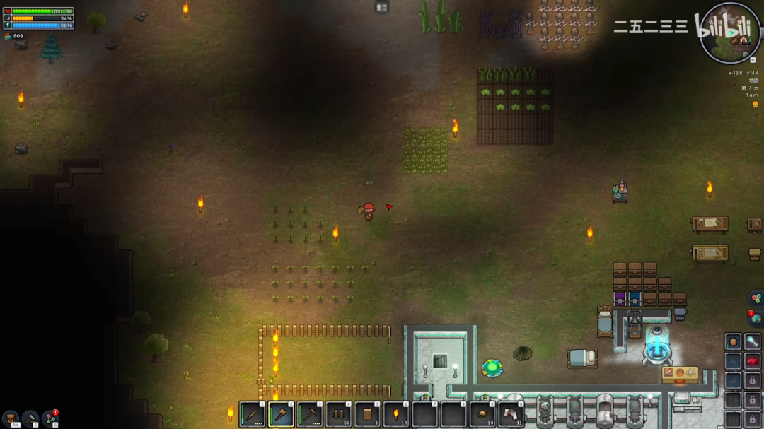 比如准备物资的阶段,喜欢耕种的玩家可以四处收集种子,买农场动物,慢慢积累,而急躁些的也大可直接去荒郊野外找野猪老家,守株待兔地刷怪兽肉;而挑战BOSS时,看似和《饥荒》一样简单的战斗方式,其实也因为繁多的系统而多变起来:可以穿上最好的装备去和BOSS硬刚,也可以用地刺陷阱等诱导敌人的走位,更怂一些的甚至可以带上一堆宠物项圈,就地驯服宠物去冲锋陷阵。