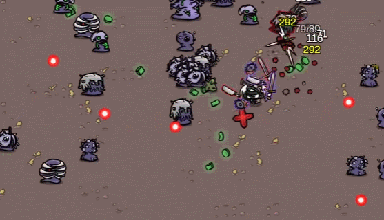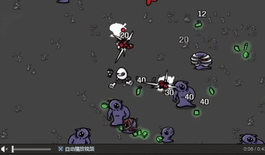 首先是对资源经营意识的培养。类《吸血鬼幸存者》游戏有一个通病,杀怪太多,掉落的经验球一般很难全收集。而《Brotato》里掉落的经验还具备金币属性,没捡到等于血亏,它处理得比较巧的一点是,即便这一波防守里没有捡到,经验还是会全部结算,同时金币会保留到下一波防守中,随新敌人被击杀而掉落给玩家,同时返还的金币还会标识好“x2”的字样。