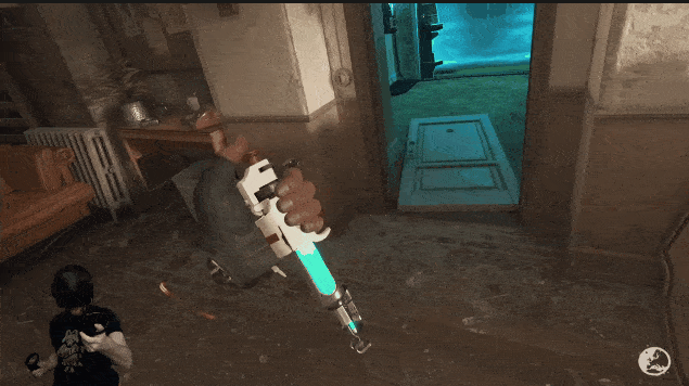 不过 Alyx 中最为核心的游戏设计是一副“重力手套”,玩家可以通过特定的动作来“吸取”物体达到更为便捷的操作和独特的玩法,比较类似于《半条命2》开头出来的重力枪。