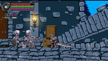 游戏类型为横版动作,左手控制左右移动和爬楼梯,右手适配各种武器动作,包括弹反,此外在屏幕上滑动,还可以做出翻滚和跳跃(没错可以跳)。