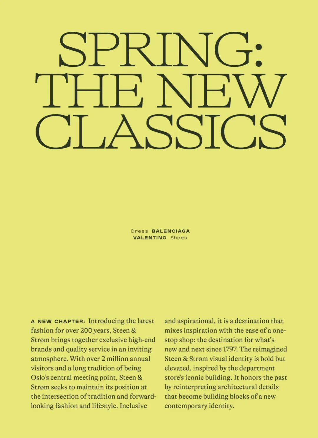 在品牌的字体应用上,Steen & Strøm 选择了 Petit Serif 作为商标 Logotype 的字体。正文则采用了 GT Alpina Extended、Plaak 6 和 Pitch Sans Medium 字体。