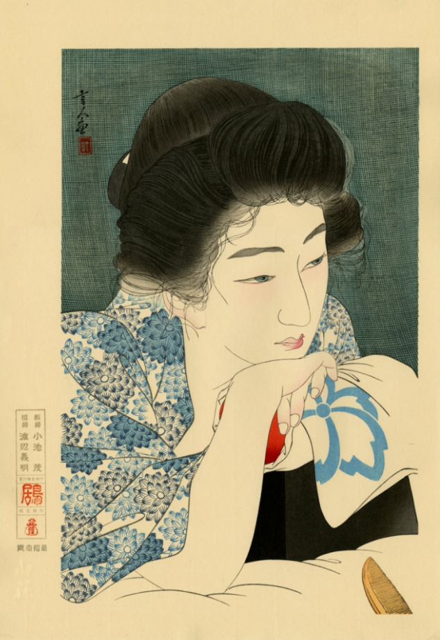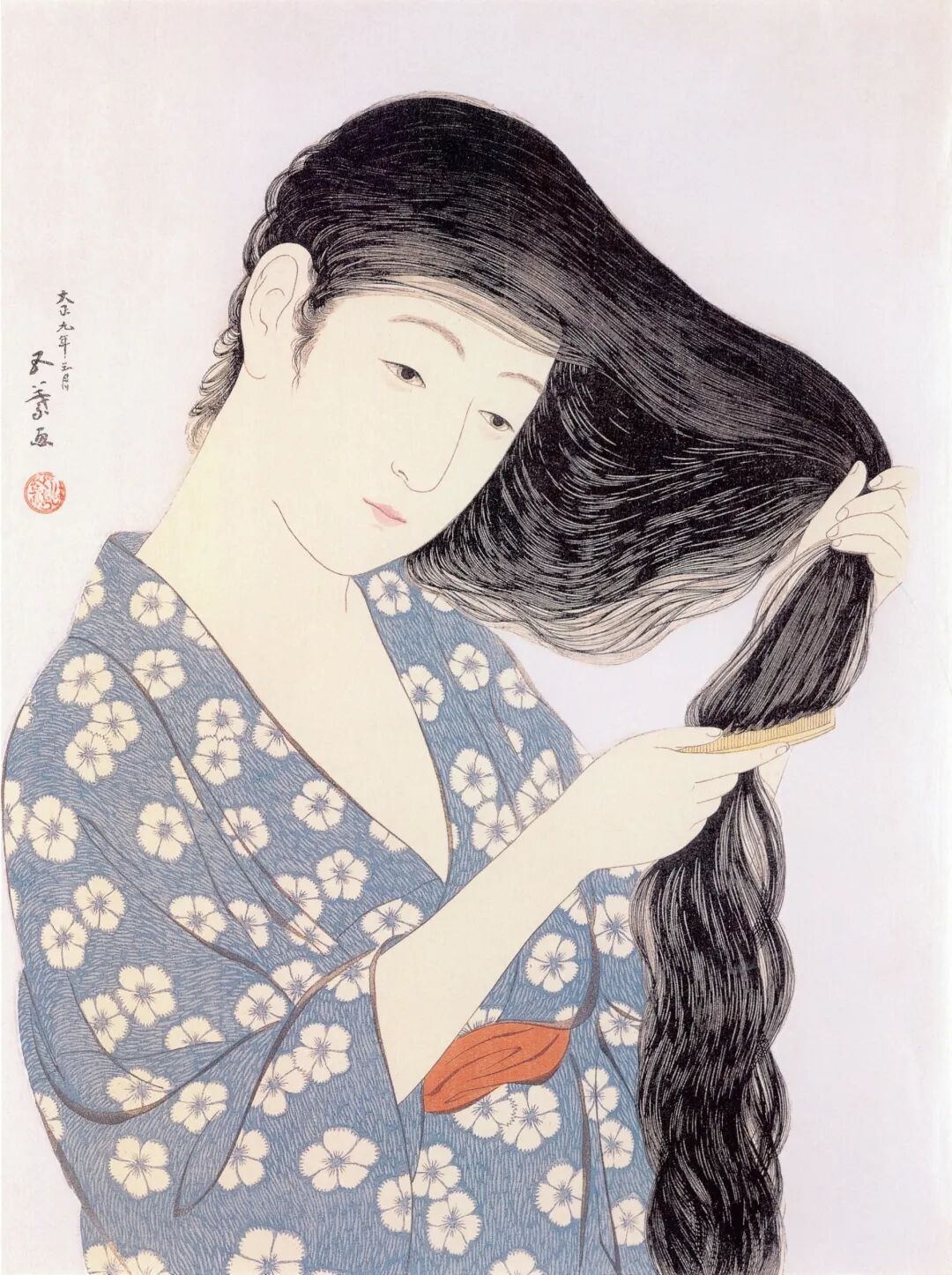 Hashiguchi Goyo《Woman Combing Her Hair》,1920