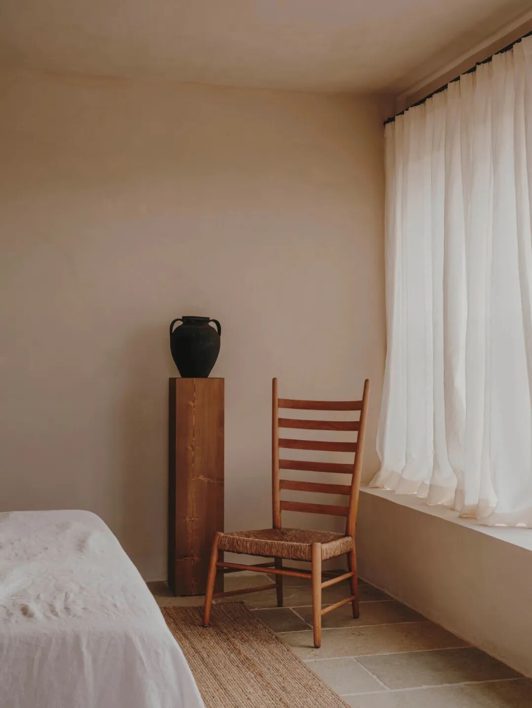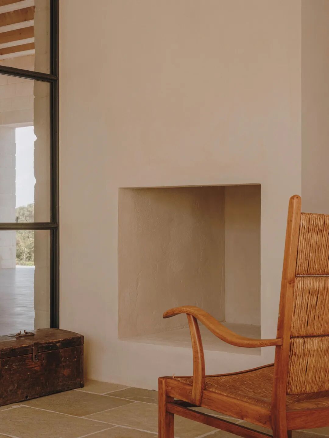 In terms of materials, the house was built out of tufo, the local sandstone. A beautiful limestone with different shades of green and yellow was laid throughout the whole interior of the house, and a completely natural powdery pink lime wash was used to paint both the interior and exterior walls.