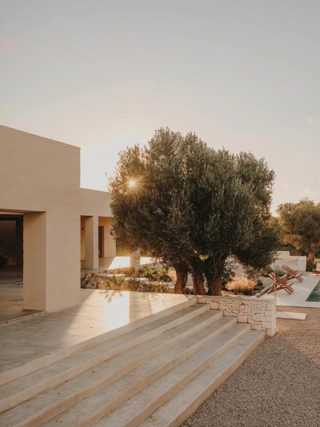 这个项目是安德鲁·特罗特工作室第一次逃离普利亚区典型的白色拱形建筑。因此,工作室并没有为灵感而走得太远:我们看到了海岸的别墅,它们有宏伟的柱廊,墙壁用当地工匠制作的石灰水涂成泥土色调,就像过去几个世纪里一样。