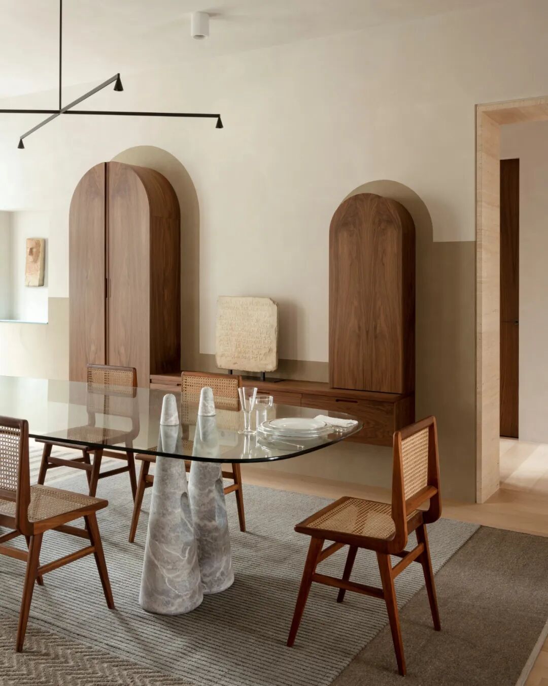 家具的设计和选择以及手工挑选公寓中的所有艺术品都成为了一个单一空间叙事和体验的一部分。