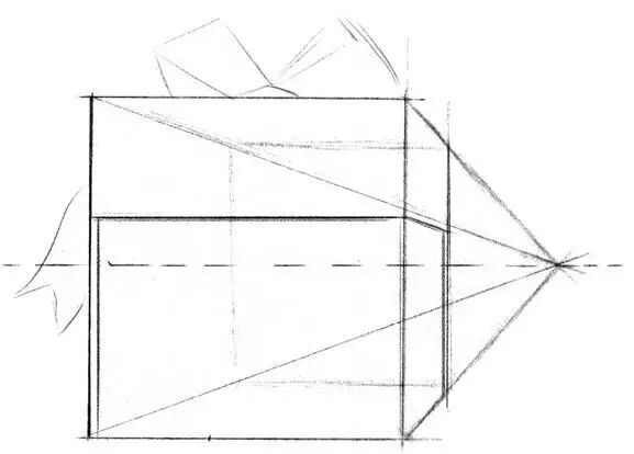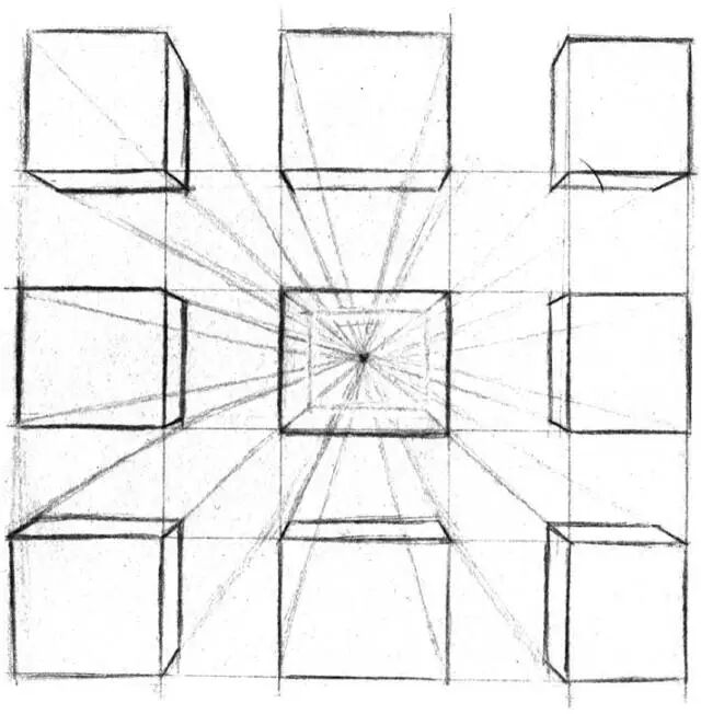 只有一个消失点的透视叫做一点透视。一点透视在生活中比较常见,尤其是近距离观察物体时,近大远小的感觉会比较明显。