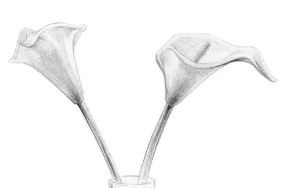 ⑤用HB铅笔在花瓣上画出浅浅的排线,表现出白色花朵的清丽。加深花朵根部与花瓣卷边的颜色,