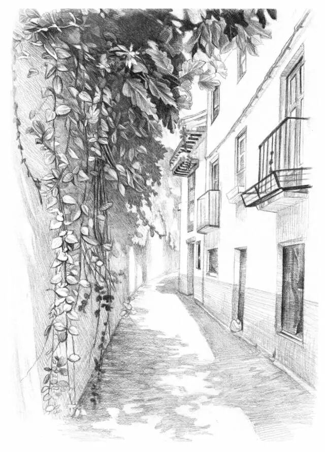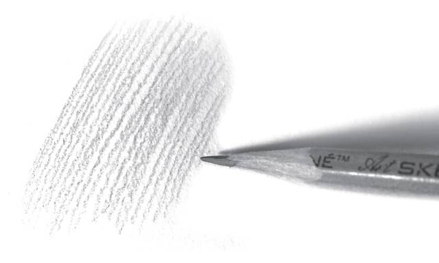 用铅笔的侧锋画出宽阔的线条,可以用来表现较为粗糙的质感。