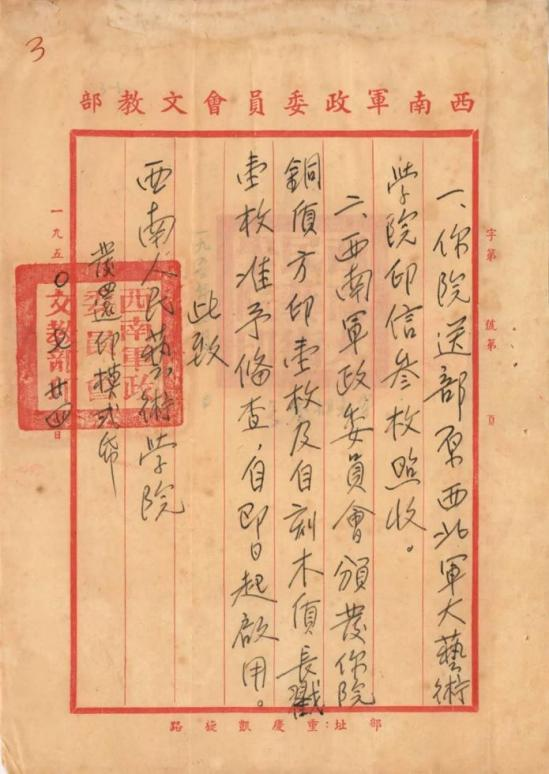 西南人民艺术学院成立文件和印章