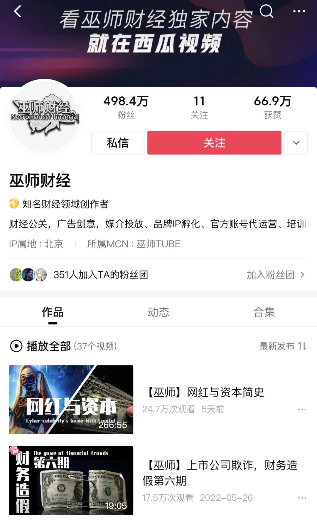 两年前,巫师财经从B站跳到西瓜视频,坊间传闻后者开出高达1000万元人民币的费用。这一数字从未得到证实。但彼时的西瓜视频在母公司的支持下,确实财大气粗、出手豪迈。