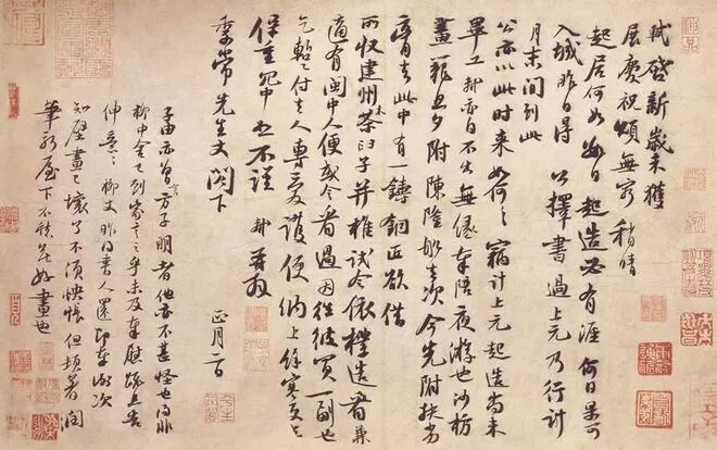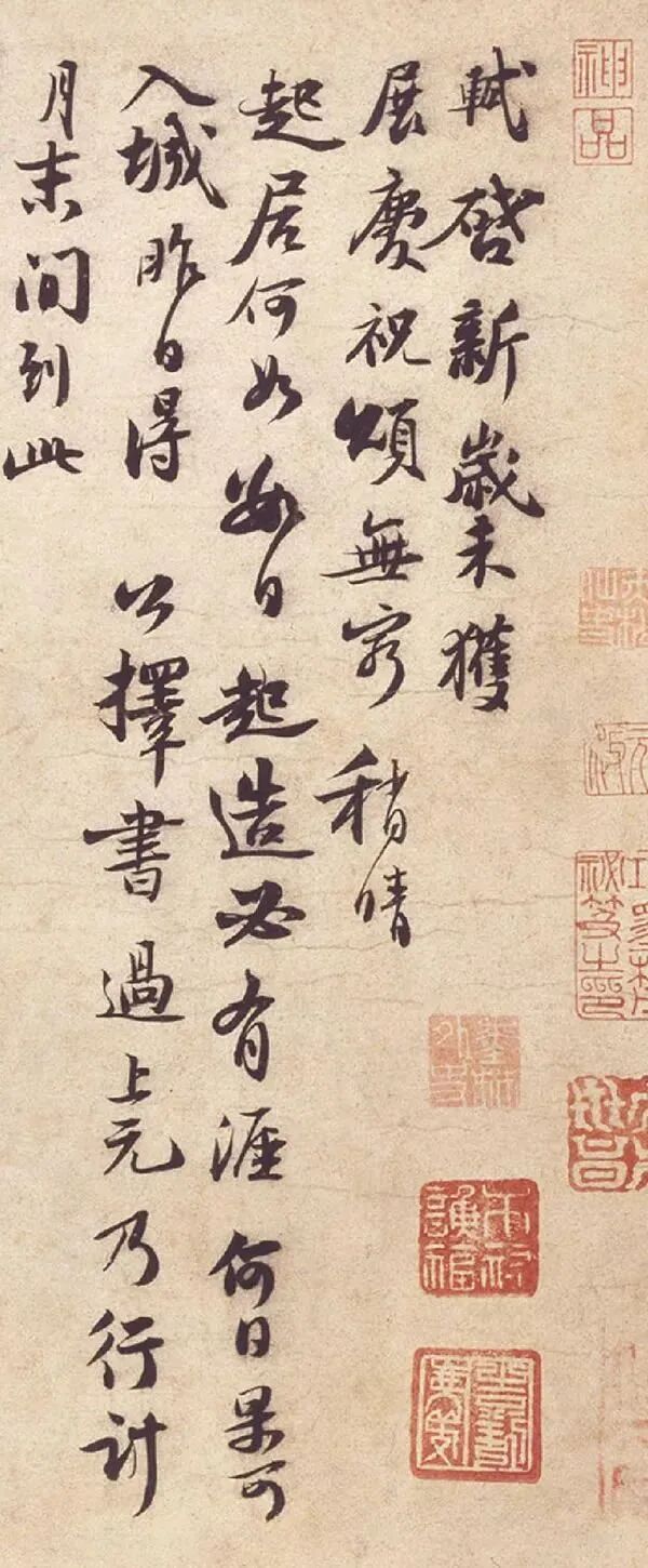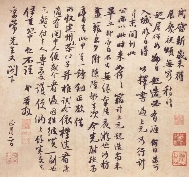 《新岁展庆帖》,信中大意是苏东坡告诉陈季常,李公择要来黄州了,过完正月十五出发,估计月底能到,届时请陈季常过来见见面。