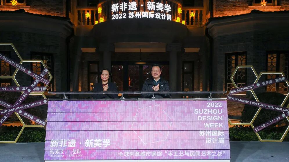 2022苏州国际设计周由苏州市人民政府主办,苏州市委宣传部、苏州市商务局、苏州市文化广电和旅游局、苏州市姑苏区人民政府承办,以“新非遗 新美学”为主题,围绕古城更新、非遗创新、文旅融合、生活美学等主题,重点推出“新非遗艺术节”“生活新美学”“Q4发现之旅”3大板块内容,多维度展示、传播苏州独特的创新设计与城市文化;同时大力度推进文化资源整合与招商育商工作,签约12个重点文化产业项目,涵盖文化产业平台、数字文化、创意设计、文旅融合等领域,签约金额超3亿元,持续擦亮苏州“设计之城”新名片。