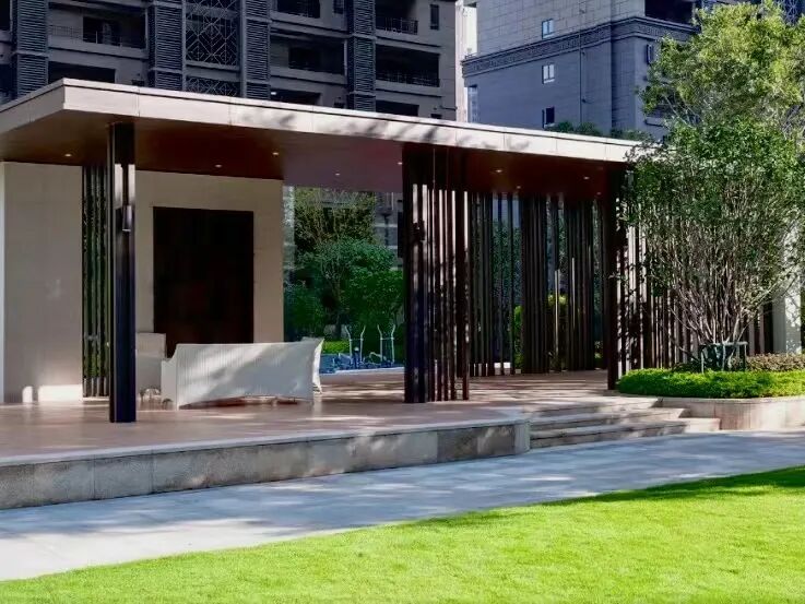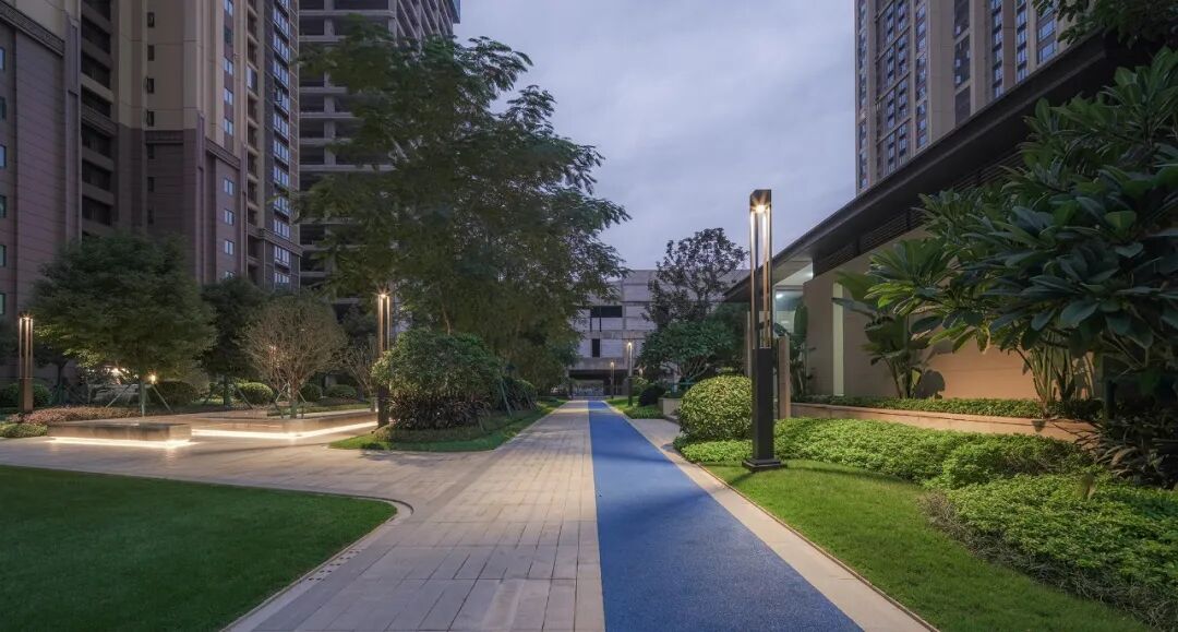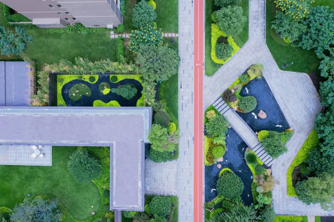 开阔的草坪空间以简约的线条带来空间上的美感,让人们在忙碌的生活中获得喘息的空间,阳光铺满大地,禅行其间,万物豁然开朗。