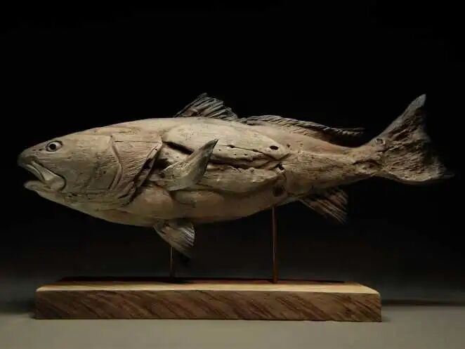 在制作一件雕塑作品之前,大多数艺术家会事先设计自己想要制作的雕塑内容,然后根据设定好的作品,再来制作适合的材料,而托尼·弗雷德里克森则完全相反,他的木雕作品,完全取决于他能捡到的浮木大小、形状和颜色。