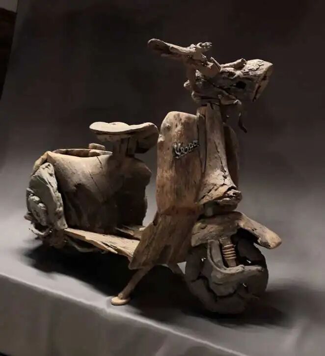 这种特殊的创作方式,充满了随机性,而随机性并不等于不可控,雕塑家根据自己的创作经验,先挑选大块的浮木作为创作主体,再利用小块的浮木去塑造细节,他的浮木作品让人看不出粗糙感,每一块木头都恰到好处,多一块少一块都不行,仿佛它们天生就是为了这些木雕作品而生的一样。