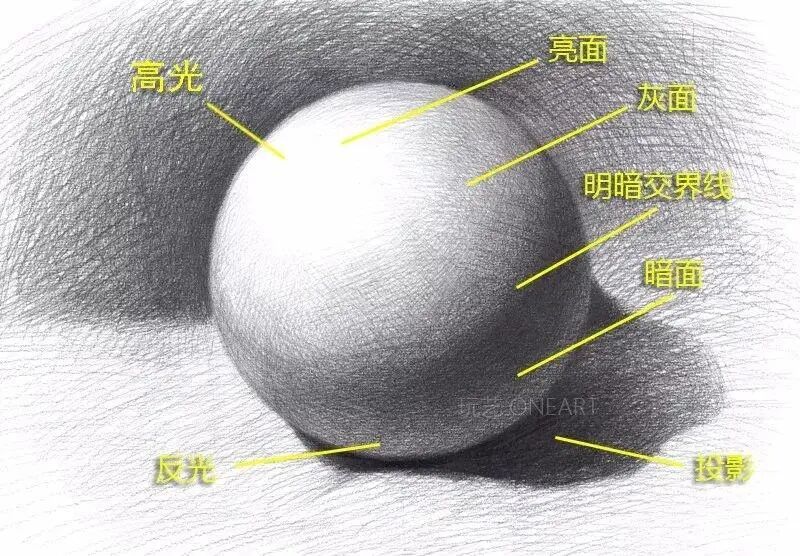 任何物体受到光线照射后,都会出现受光部和背光部,即明、暗两大系统,这两大系统构成素描明暗变化的基础。