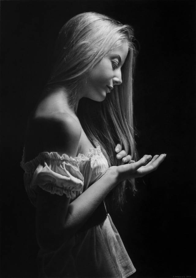 写实素描需要极强的观察、表现能力。效果震撼,表现直观,一般为长期作品。