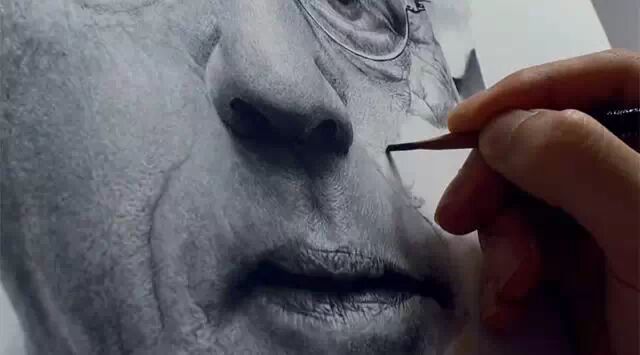 韩国画家sungjun Jang ,擅长用铅笔绘画超写实头像,这幅作品尺寸较大,他用了一只自动铅笔,一支2B铅笔,外加一块橡皮,在画纸上精雕细琢了100小时,终于完成了这张令人惊叹的素描超写实头像。