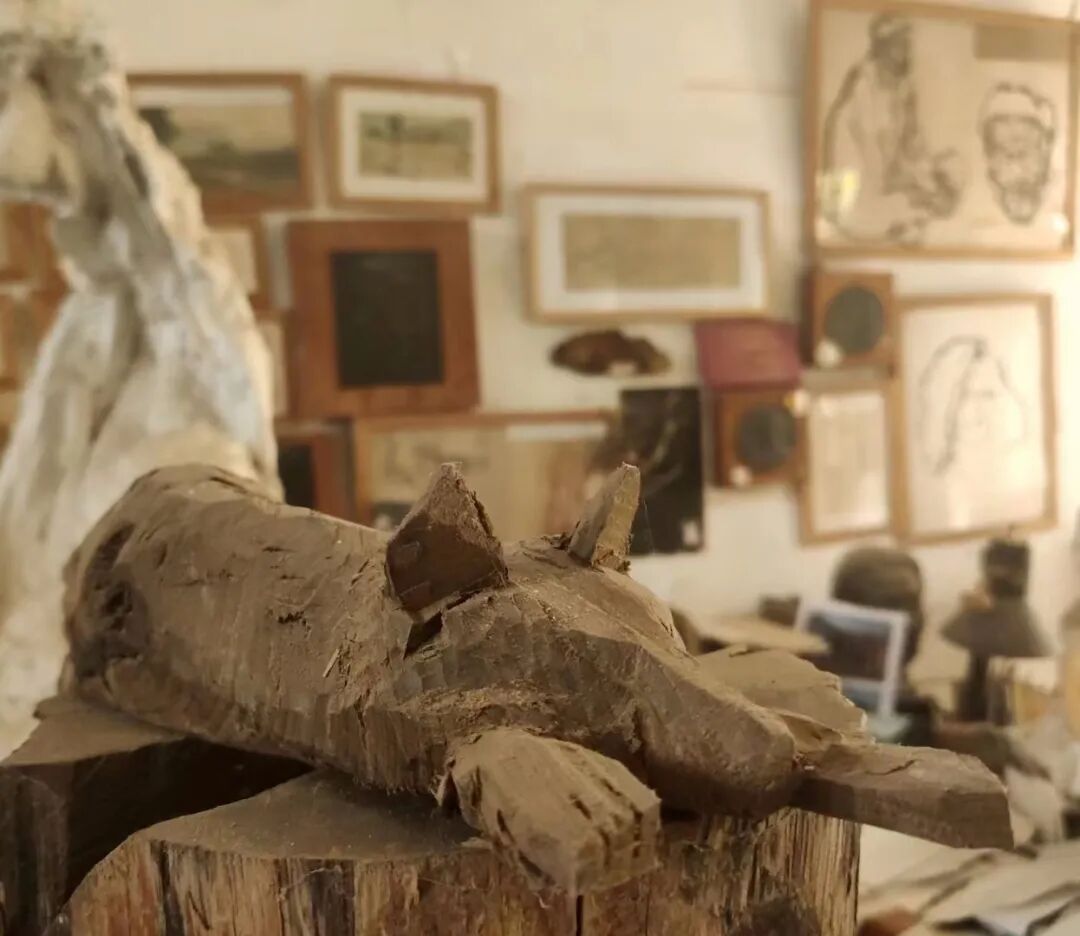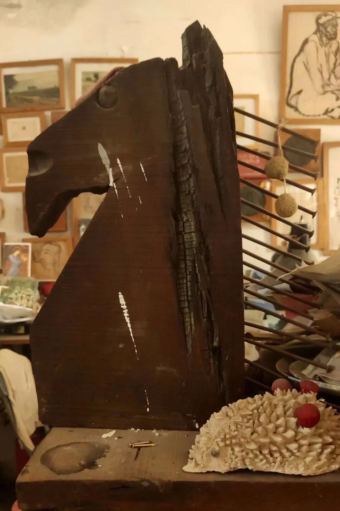 这些天北京的疫情封控导致我回不了家,所以一直寄居在昌平下苑村。我很早就知道孙家钵老先生也住在村里,这回试着跟他约了个时间前去拜访。孙老师养了一条叫小熊的大狗,见到来人扑个没完没了,为了躲避它我只好全程手里点根烟(大家可能会在视频里看见)。孙老先生今年83岁高寿,都说人越老越可爱,确实如此。他看起来身体强健,精神矍铄,每天都干点木雕活。他说,艺术就是玩儿。