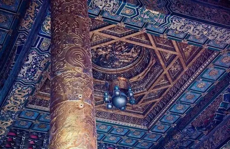 众所周知,我国古代推崇“天圆地方”的宇宙观,同样,为了表现这种宇宙观,古人对室内的“天”也给予了特别的改造,因此“穹然高起,如伞如盖”的建筑内部装饰——藻井,应运而生。就像西方教堂建筑中的穹窿顶代表上苍一样,中国建筑内的藻井也就代表了天体的缩影。