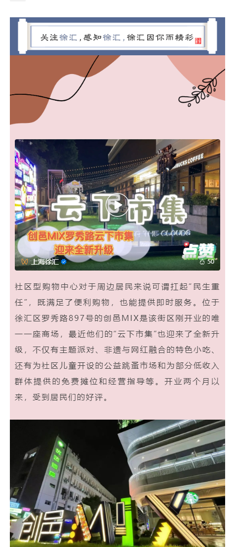 创邑MIX·罗秀路开业获上海徐汇官微报道