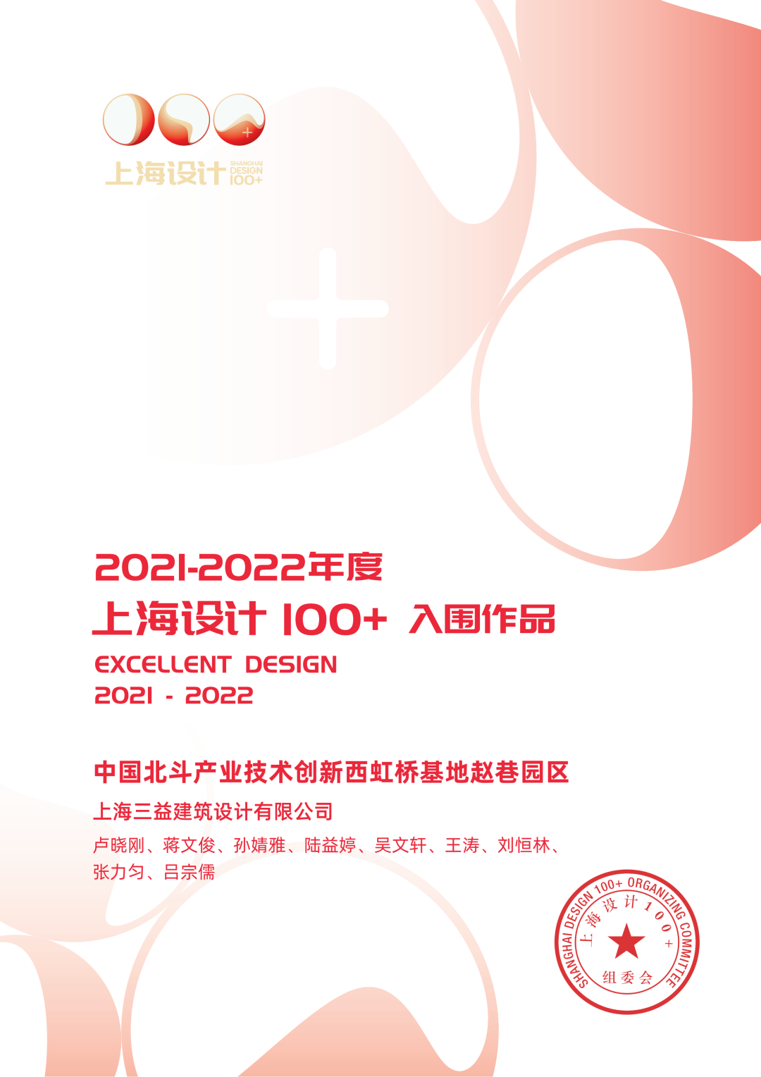 2021-2022“上海设计100+”吸引了来自中、美、英、法、意等全球18个国家,1416个设计团队的2128项设计创新产品、行业设计案例、重大设计事件参与申报。由三益主持设计的「中国北斗产业技术创新西虹桥基地赵巷园区」成功入围,这也是三益继入围前两届“上海设计100+”后再次入围该奖项。