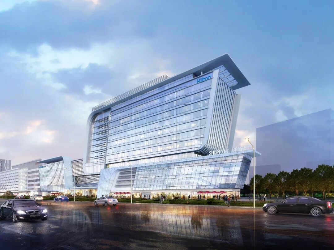 上海新虹桥灿辉希尔顿五星级酒店_幕墙施工中