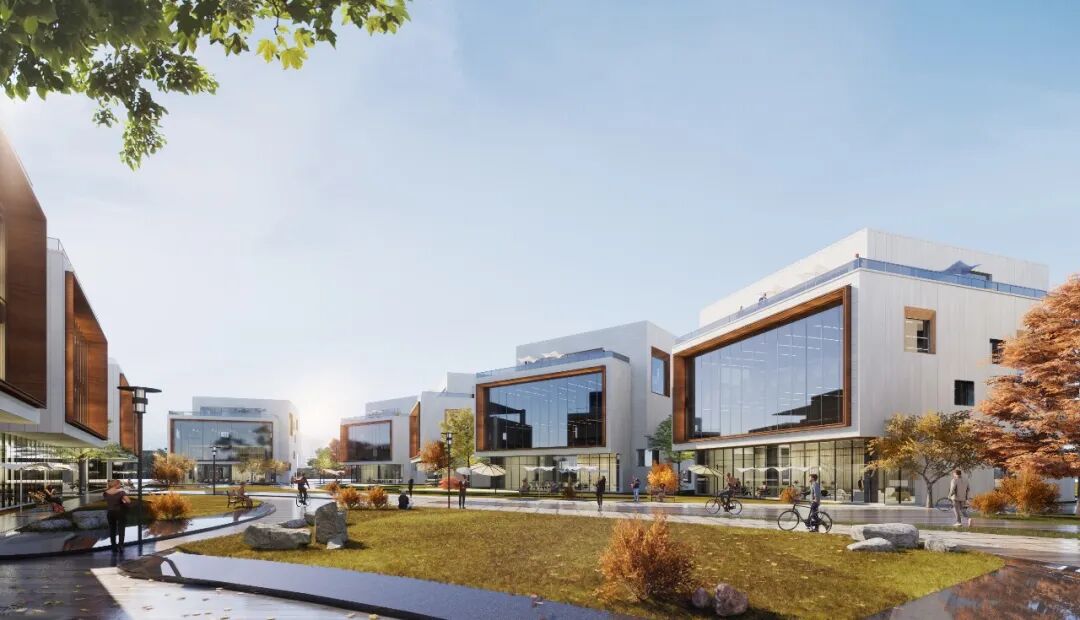 常熟波司登康博智慧谷是以智能制造产业为主导,以智能制造技术和智能制造系统及其衍生产品为核心,集智慧城市、智能操控、智能决策、金融科技及跨产业融合服务配套于一体的高端绿色生态总部基地。在外部资源欠佳的条件之下,设计通过内部造景,营造出专属于园区自己的私享大花园。