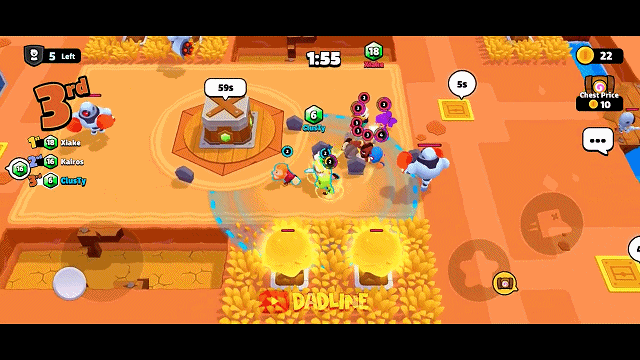 击败玩家的角色能获得宝石,单局比赛里倒计时结束时,结算宝石最多的玩家会胜出;而如果玩家战力强悍,率先击败了其他所有玩家的队伍,游戏也会提前结束。