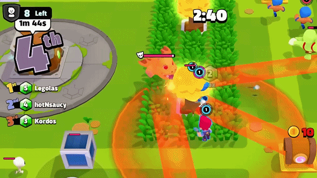 开局玩家要从随机给出3个角色里选择1个,开始“打野”,击败地图上散落的怪物会获得金币,用来开启宝箱,宝箱里会随机刷新出英雄(同样还是3选1)加入玩家的队伍(也就是Squad),逐渐形成更强的战斗力。