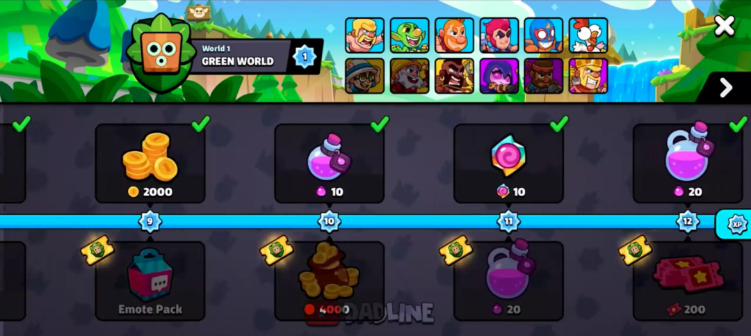 对局之外,《Squad Busters》展现的内容很有限,不过依然是各种熟悉的元素:Supercell风格的UI,和《皇室战争》《荒野乱斗》等类似的玩家等级、角色成长机制,以及大同小异的商城和通行证等等。