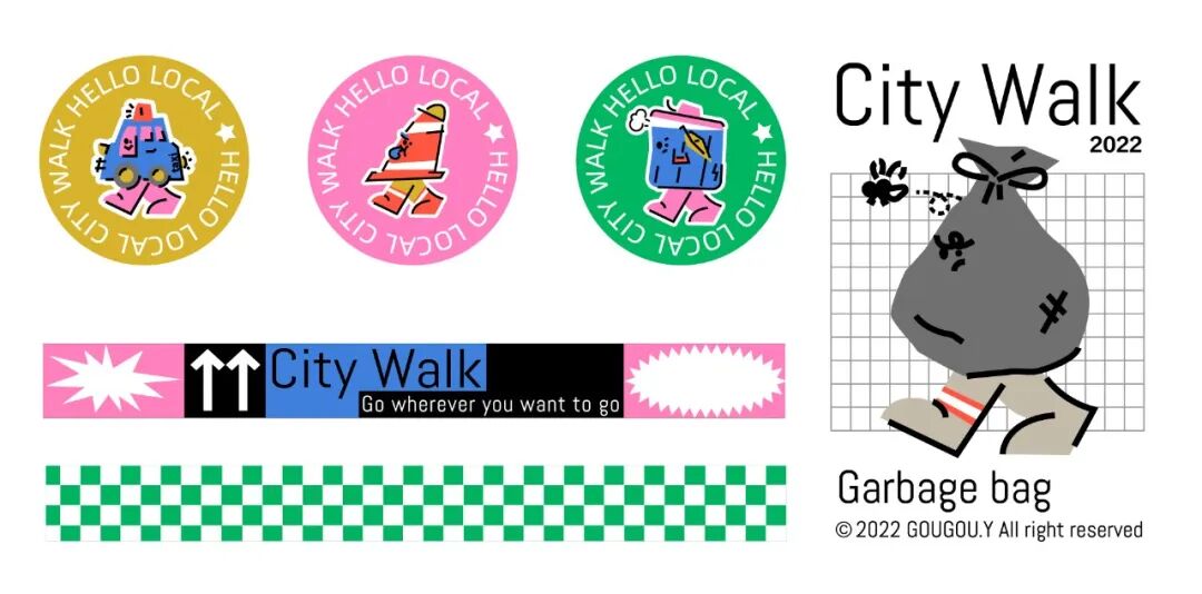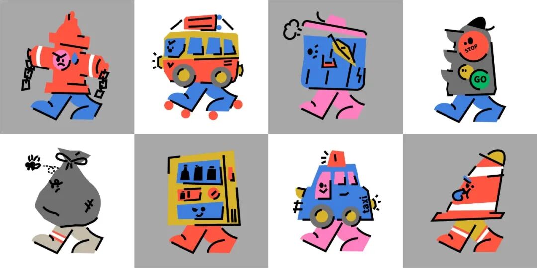 以城市漫步为主题,将城市里最常见的红绿灯、的士、垃圾桶、消防栓、垃圾袋等常见小物作为创作灵感。生活化的情景用拟物的手法,让设计变得有共鸣。拥有趣味的同时也富有感情色彩。