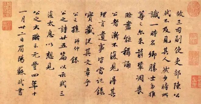 故三司副使吏部陈公,轼不及见其人。然少时所识一时名卿胜士,多推尊之。尔来前辈凋丧略尽,能称诵公者,渐不复见。得其理言遗事,皆当记录宝藏,况其文章乎?公孙师仲,录公之诗廿五篇以示,轼三复太息,以想见公之大略云。元丰四年十一月廿二日,眉阳苏轼书。