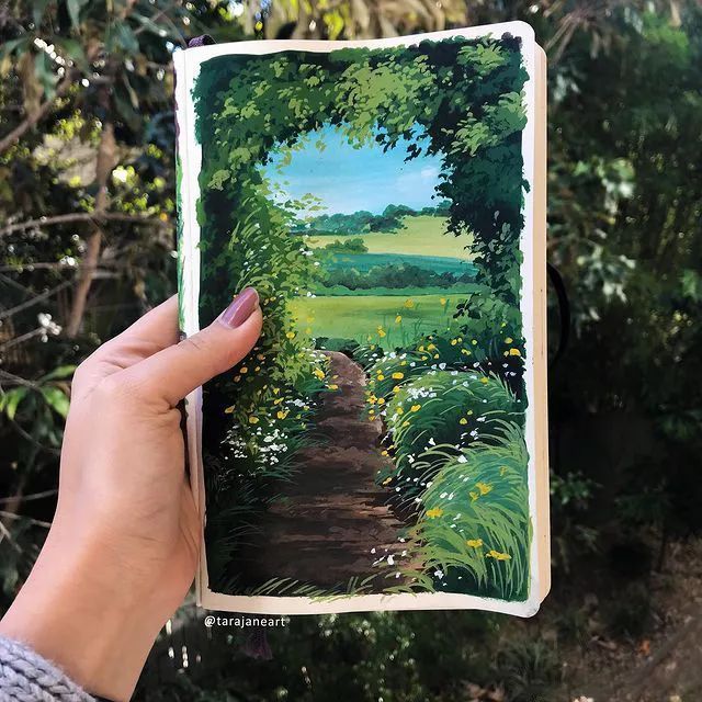 将手绘的动漫场景放在现实场景中,很是融合,长满了各式各样的小野花的田径小路,画面色彩真实,色调和谐,这是我们日常生活很常见的路边小景。我们都知道,艺术来源于生活,却又高于生活,没有非富的生活经验和对周边事物的观察,就没有艺术创作的源头和灵感,正所谓,生活中的所见所闻,都是艺术素材的提供者。