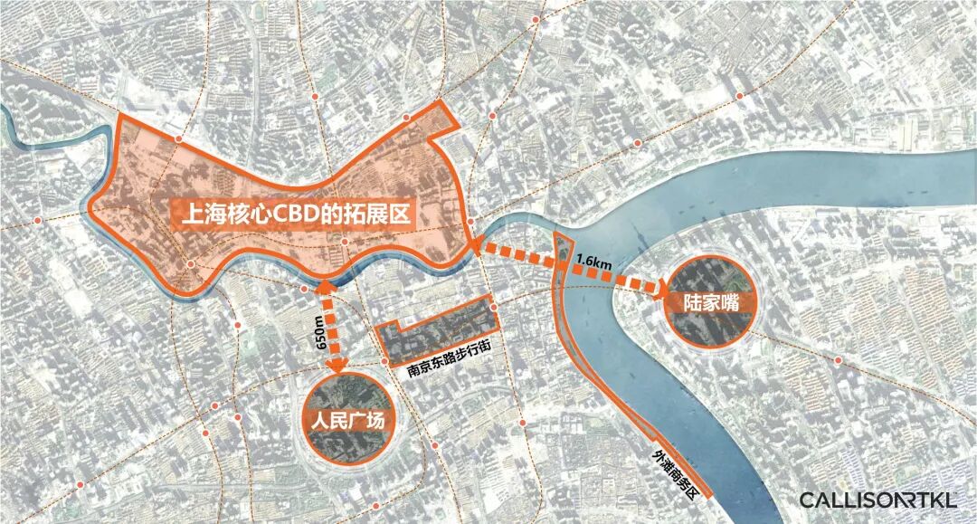 苏河湾的发展定位必须放在上海CBD核心经济圈的大框架下来分析才更加清晰——该区位距人民广场直线距离650米,外滩商务区1公里,陆家嘴1.6公里,苏河湾的独特区位优势使其具备主动承接上海核心CBD的功能拓展的可能性,积极实现CBD向北经济的拉动。