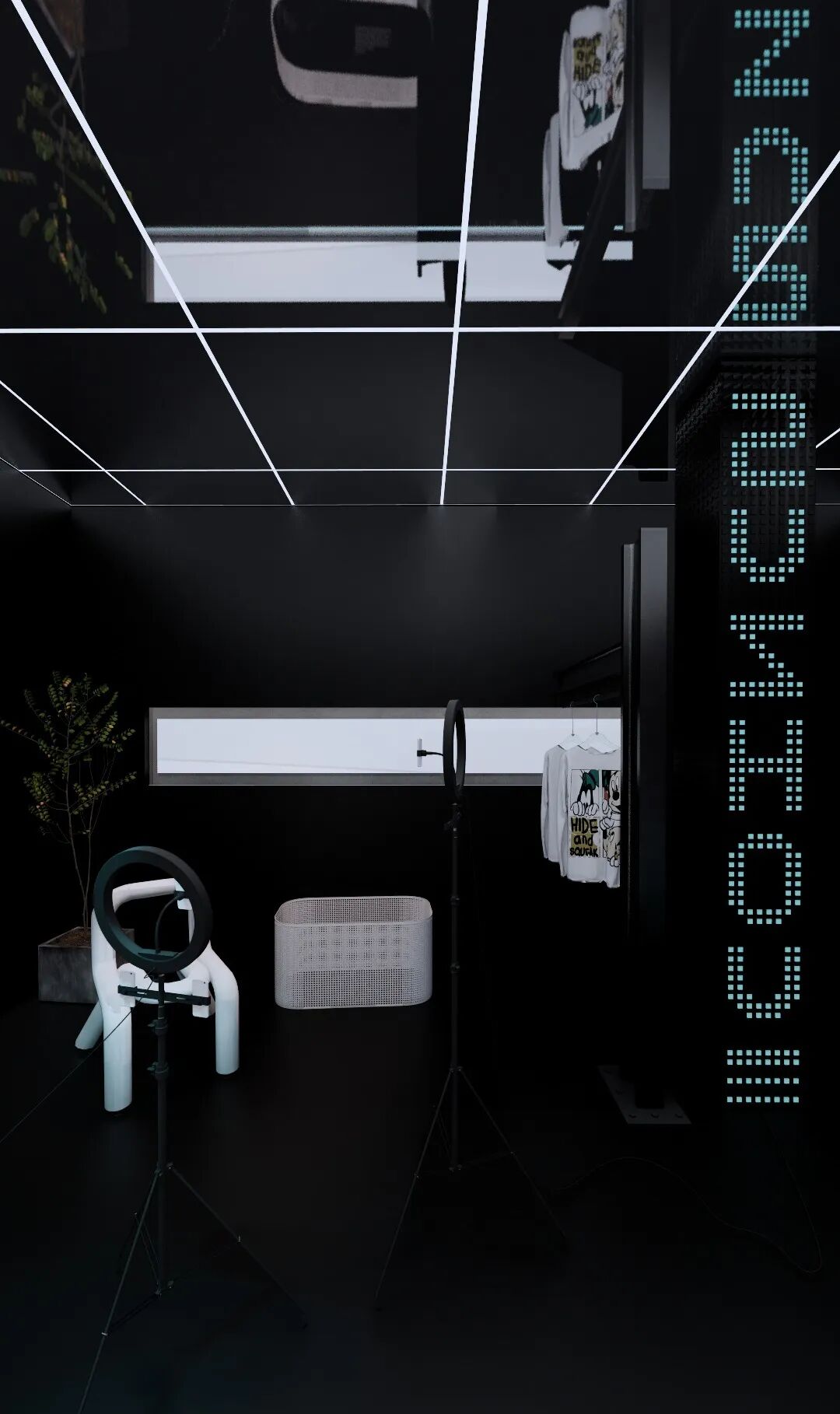 移动、旋转、分散、聚集,座椅和陈列柜于空间中切换形态,适应于零售与展览空间的属性变化。拒绝令人目眩神迷的浮华,舍弃昏暗的沉闷。