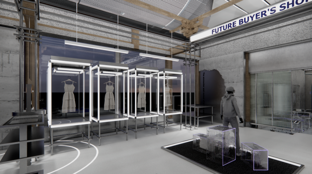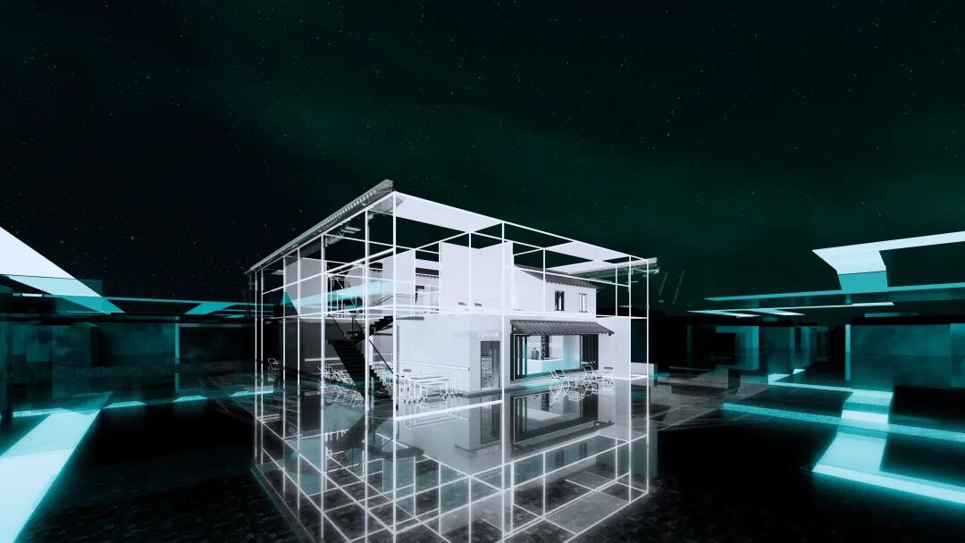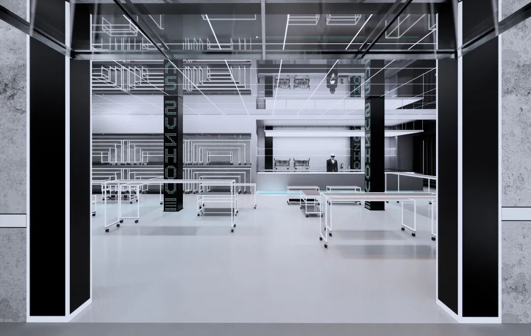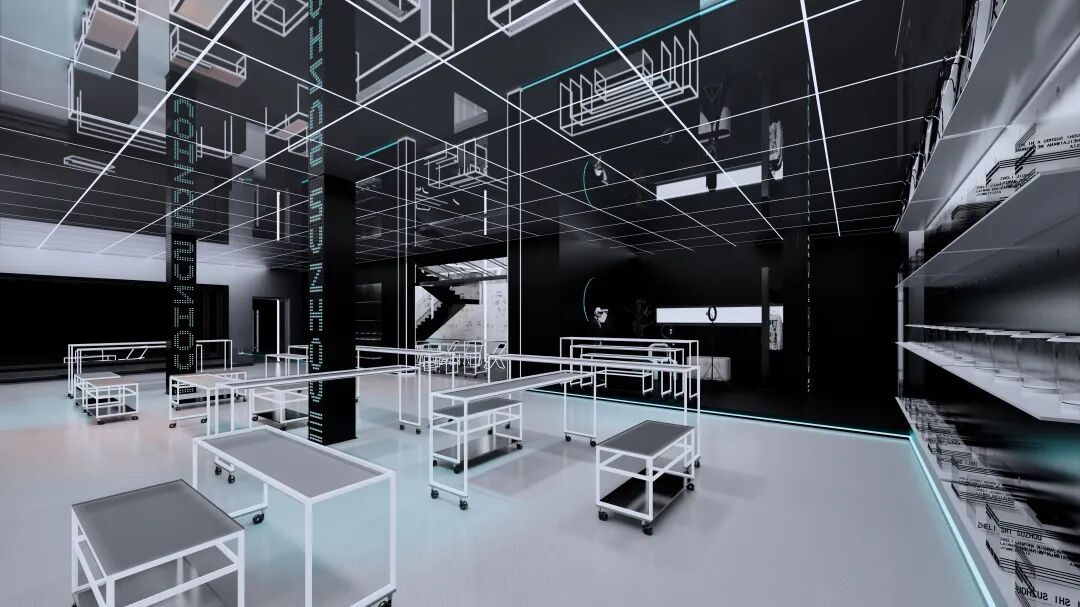 建筑数字化,用人工智能(AI)数据模拟出更需要的建筑空间,通过隔板以及支撑框架的搭建,构建出新的城市空间。