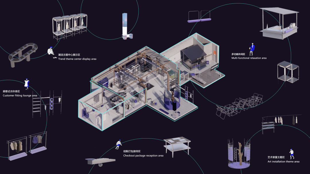 不同的业态品类衍生的同时,也改变消费者抵达的目的,拓宽场景适应性。创新型潮品展示台激活全新的视觉陈列。所有的零售产品都标志着某个时代被追逐的潮流风尚。