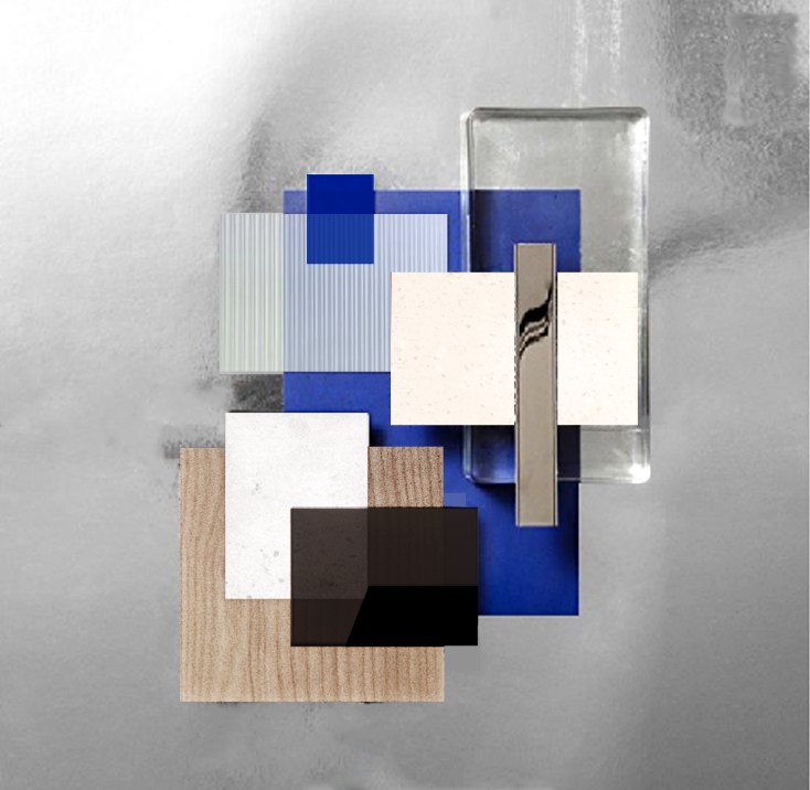 The two light white space blocks represent the trend and life, intersecting with the traditional land, as the best response to the revival of life and the rebirth of the trend.