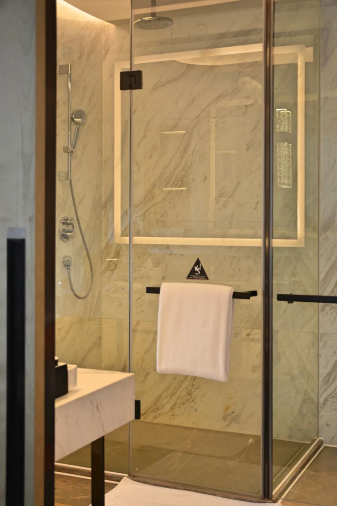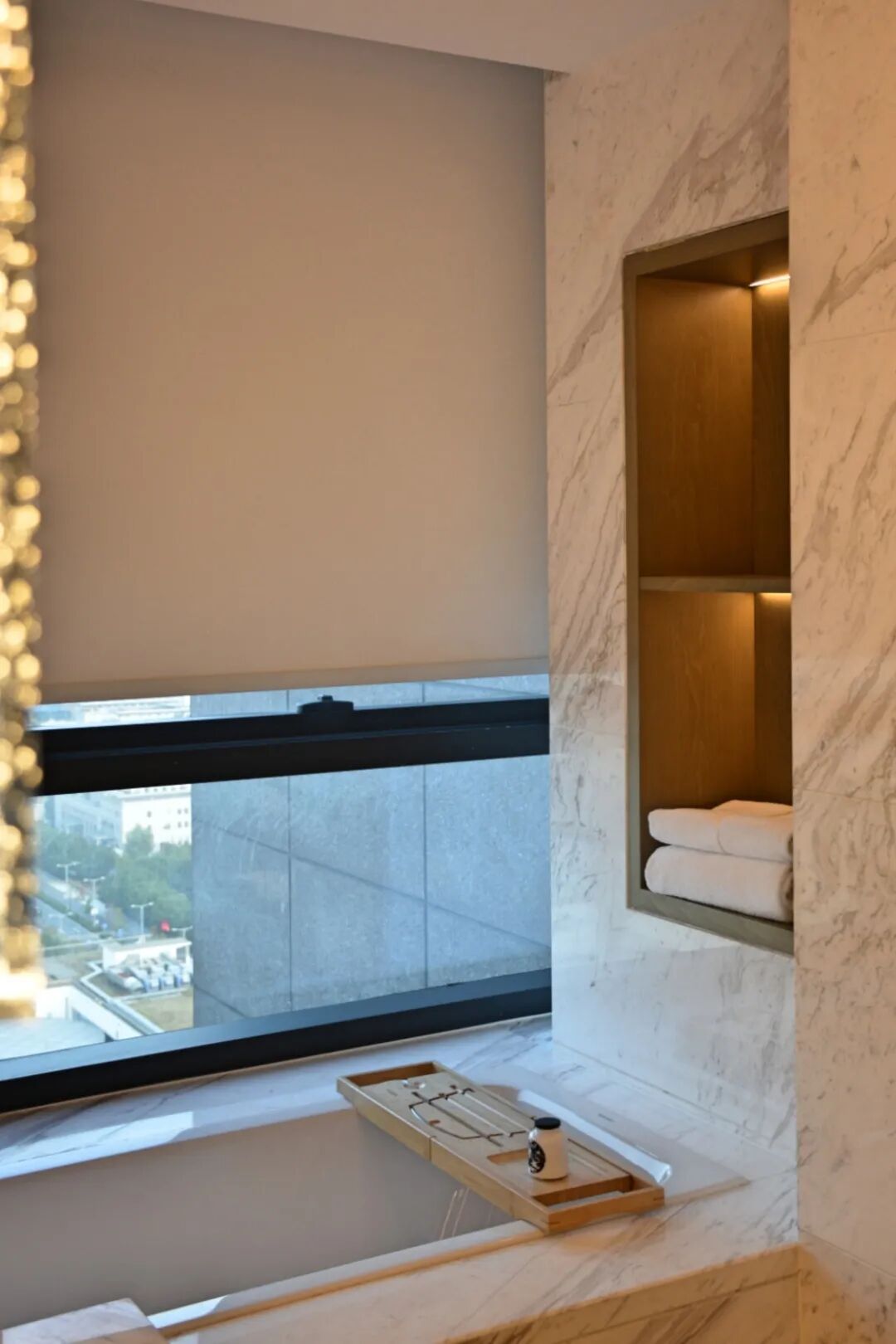 墙面当代风格的装饰画、洗浴和卫生空间之间全透明的玻璃、和气泡纹理的镜灯,则时刻提醒着我,一个新的苏州,不同于社交媒体中的刻板印象的苏州,我正身处其中。