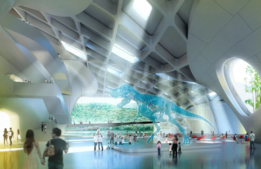 常设展览区借鉴了 TomLeaderStudio 设计的狮山公园,并在整个空间提供了多条路径。大厅为未来的策展人组织空间提供了无限的机会,建筑的周边提供了多个入口,允许不同的博物馆项目独立于主要展览空间运作。儿童科学园将成为一个探索馆﹣﹣一个充满活力的动手活动区,孩子们可以在这里学习编码和编程视频游戏,体验电力的奇妙,甚至可以爬上月球表面。临时展厅分为三个1000米长的展厅,可根据需要合并为一个大空间。