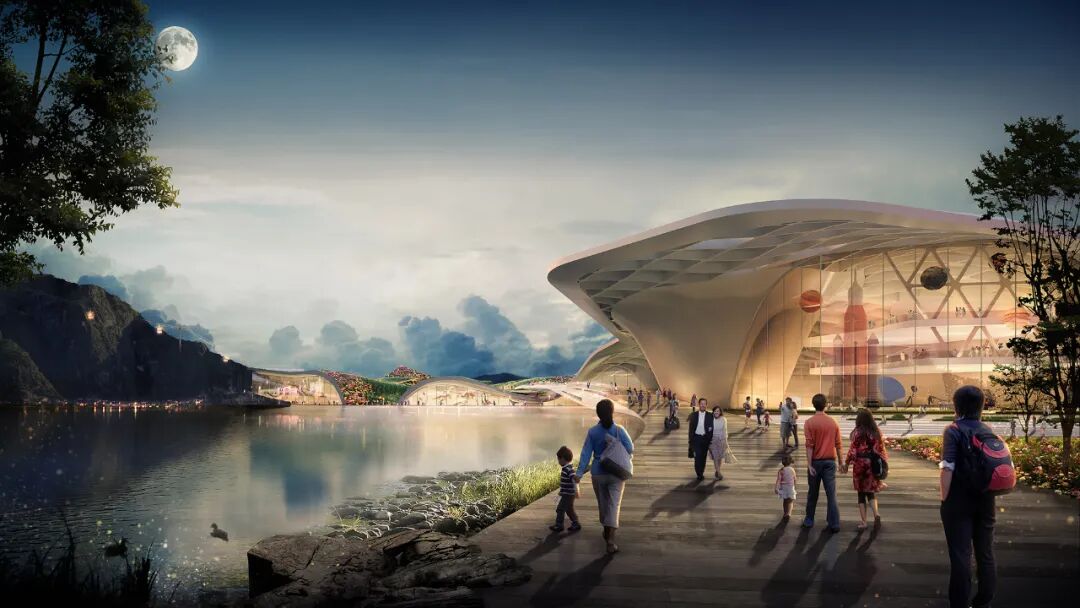 苏州科技博物馆的拟议竞赛设计概念-一是三个文化组成部分之一,被认为是前游乐园改造的一部分。该博物馆将坐落在苏州狮山公园著名的园林之中,将庆祝中国几个世纪以来的技术进步,包括其不断发展的太空计划。 kdA 为新博物馆提出的设计反映了苏州园林一贯的特点:灵感和启迪的源泉。