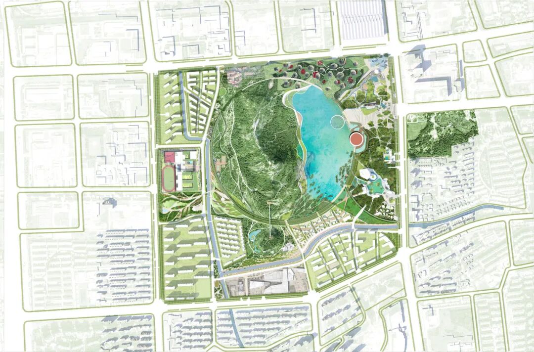苏州科技博物馆位于狮山公园北缘,毗邻金山路、狮子山、新改造的湖泊和中转广场﹣﹣城市与自然交汇处的活跃景观环境。