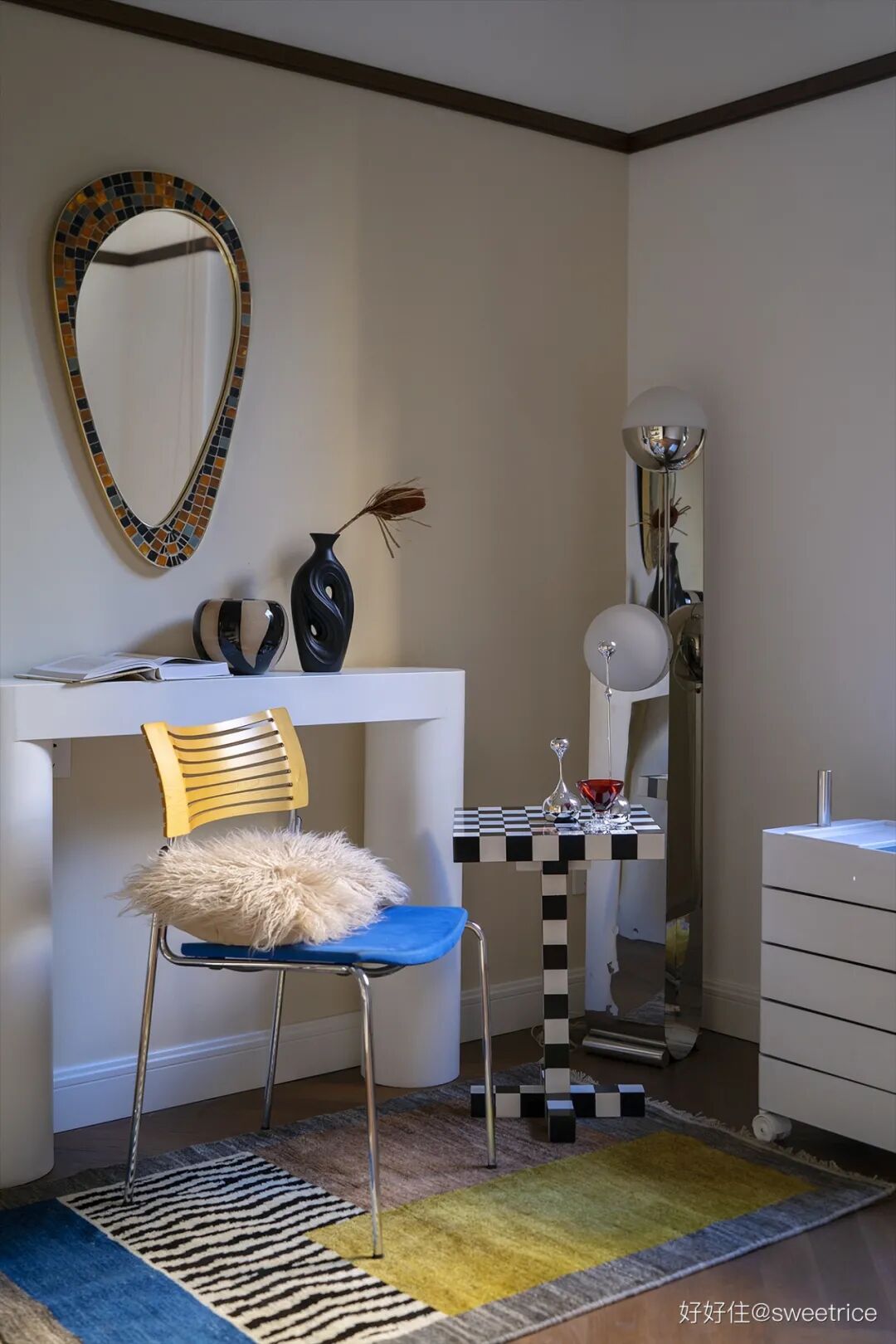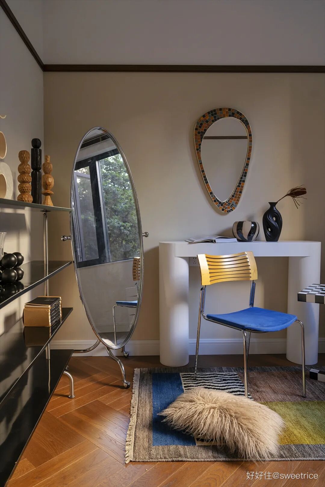 由于业主穿搭博主的身份,特意安排了一间多功能房,来满足业主平时的工作需求,通过搭配一些时尚家居和中古饰品来配合拍摄场景。