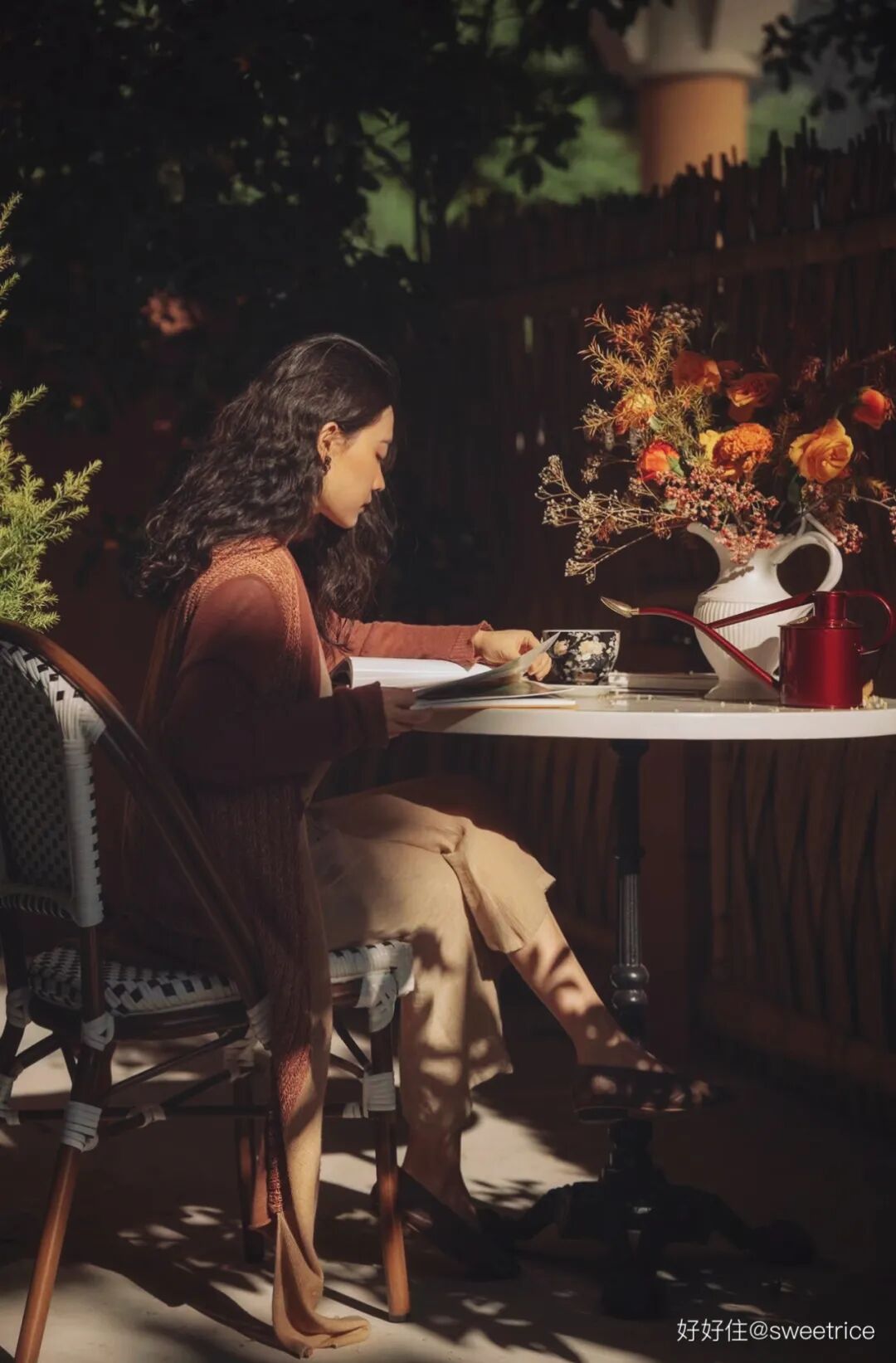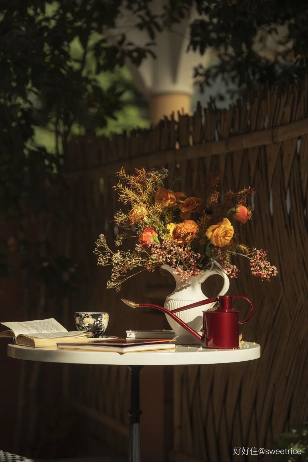 秋阳正暖,享受桂花树下的下午茶时光。