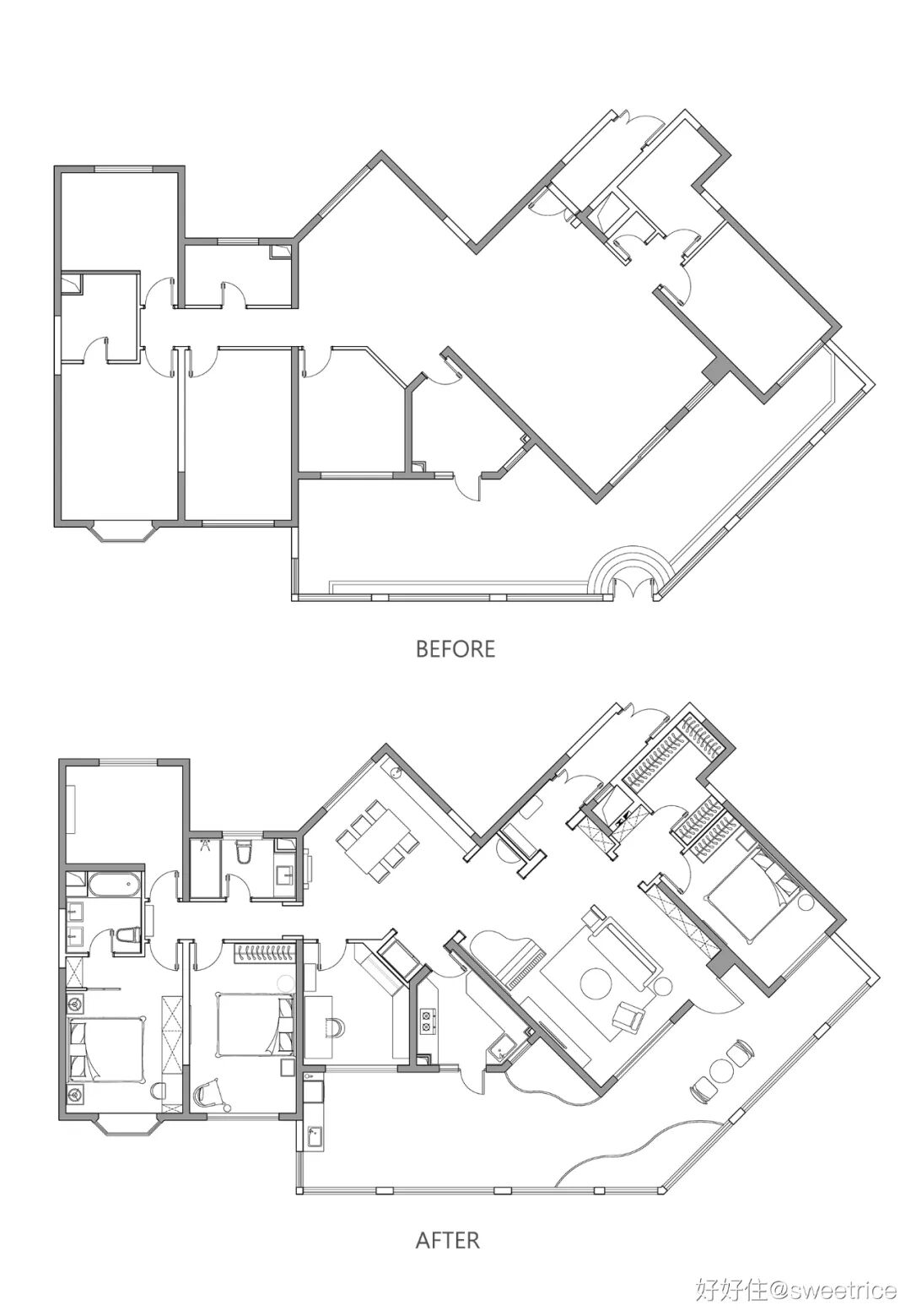 △改造前后的户型图